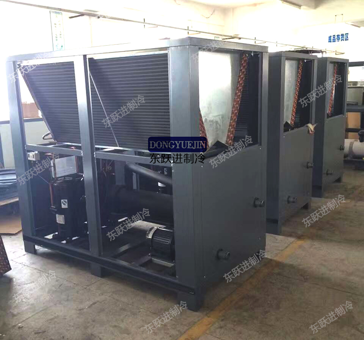東躍進制冷經(jīng)過十幾年的發(fā)展,雖然風冷式箱式冷水機作為較簡單的機型,但是使用的客戶還是非常多的,我們也對其進行了多次升級,機組在性能上更加的穩(wěn)定,故障率也非常低,多壓縮機制冷系統(tǒng)設計使使用比較節(jié)能。雖然每個廠家的風冷箱式冷水機外觀不一樣,但實際上配置都相差無幾,都是由渦旋式壓縮機,殼管式或水箱盤管式蒸發(fā)器,翅片式冷凝器,水泵,風機,膨脹閥,過濾器,高低壓壓力表,電控系統(tǒng),機箱等組成。